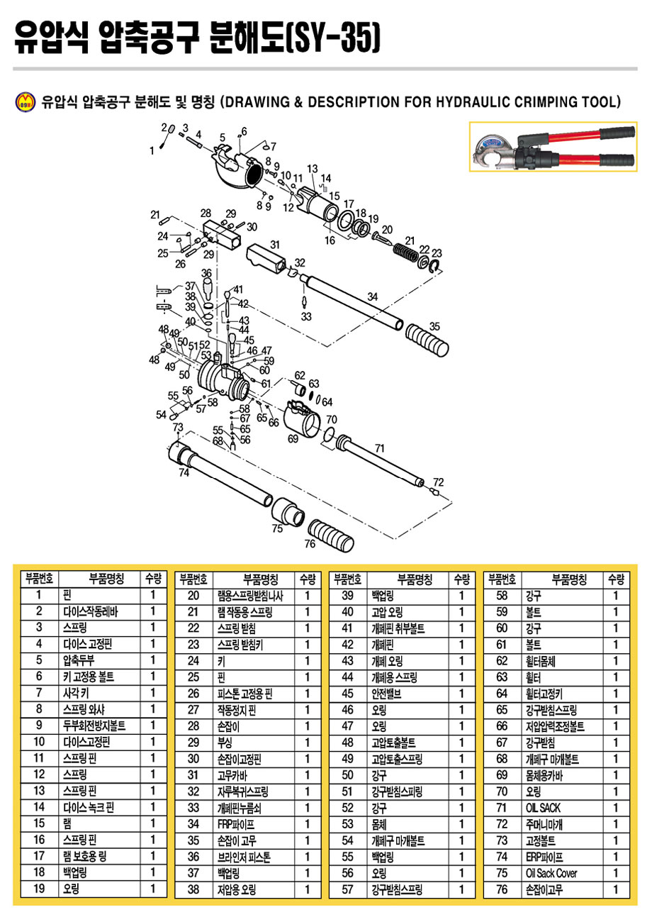 [신성공업사]유압식 압축공구 분해도[SY-34] 조회 23551