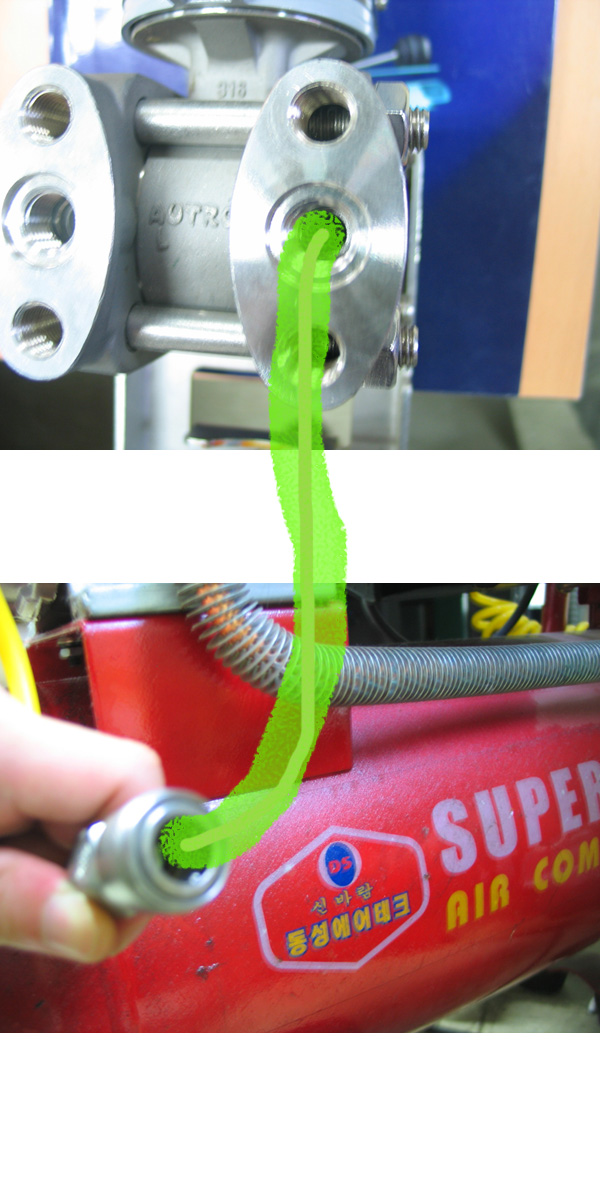사진처럼 녹색선을 대신할만한 나사와 호스를 찾고있습니다