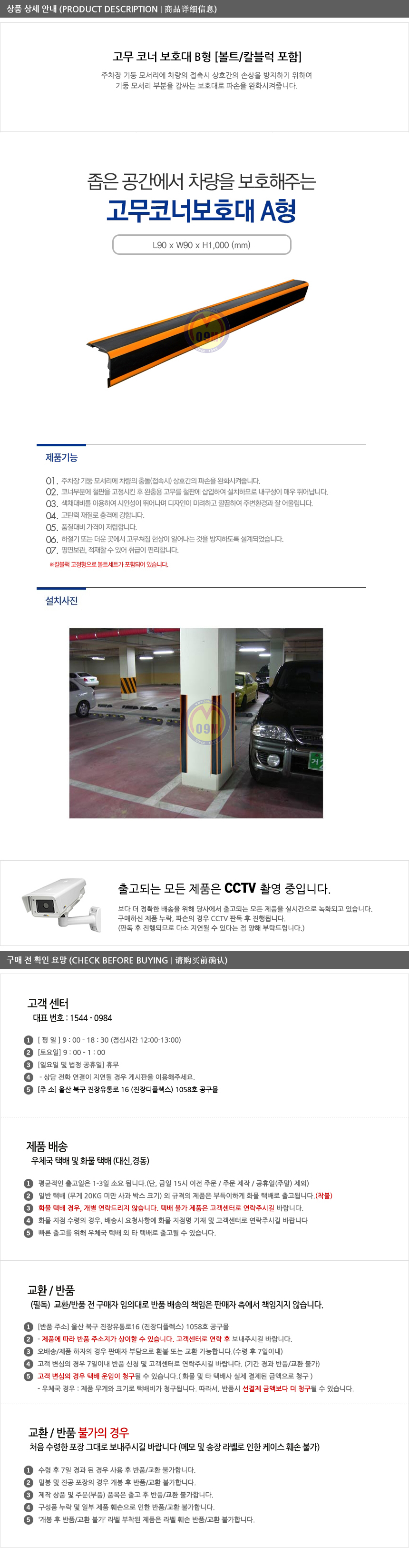 고무코너보호대A형[볼트포함] 주차장코너보호대 모서리보호대