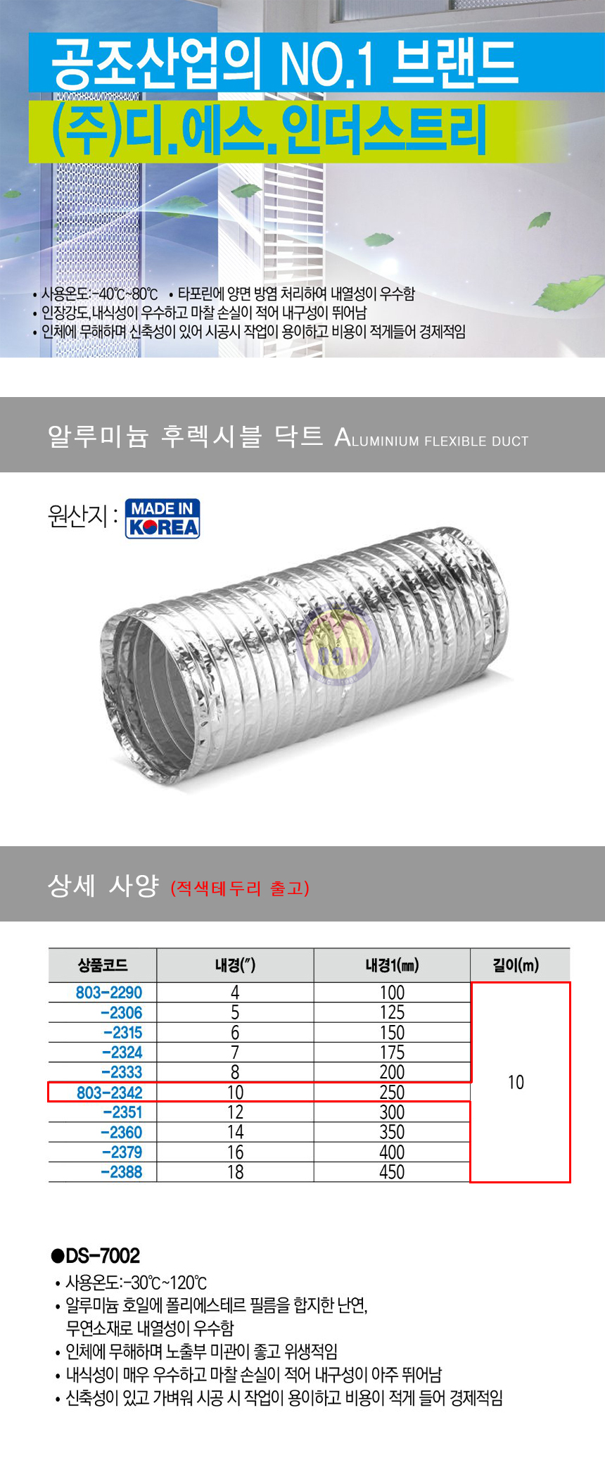 알루미늄 후렉시블 닥트 250mm 디에스인더스트리,공구몰,8032342