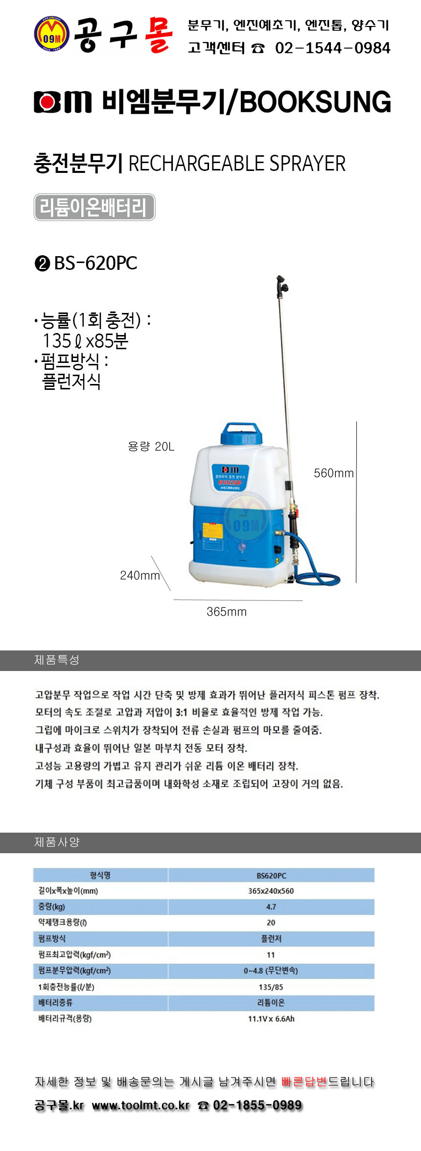 북성-충전분무기 BS-620PC BM, 비엠분무기, BM620PC 충전식분무기, 울산공구몰, BS620PC