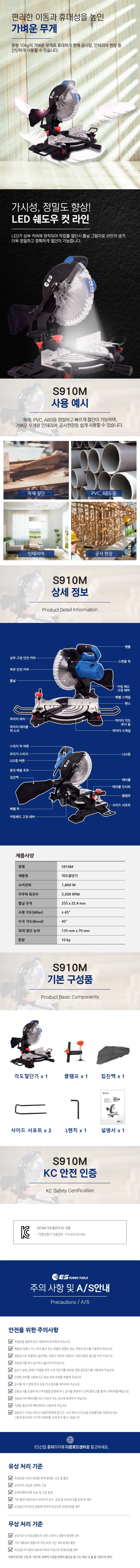 ES산업 각도절단기 S910M (1800W) ES산업 (255mm톱날포함) 원형톱, 공구몰
