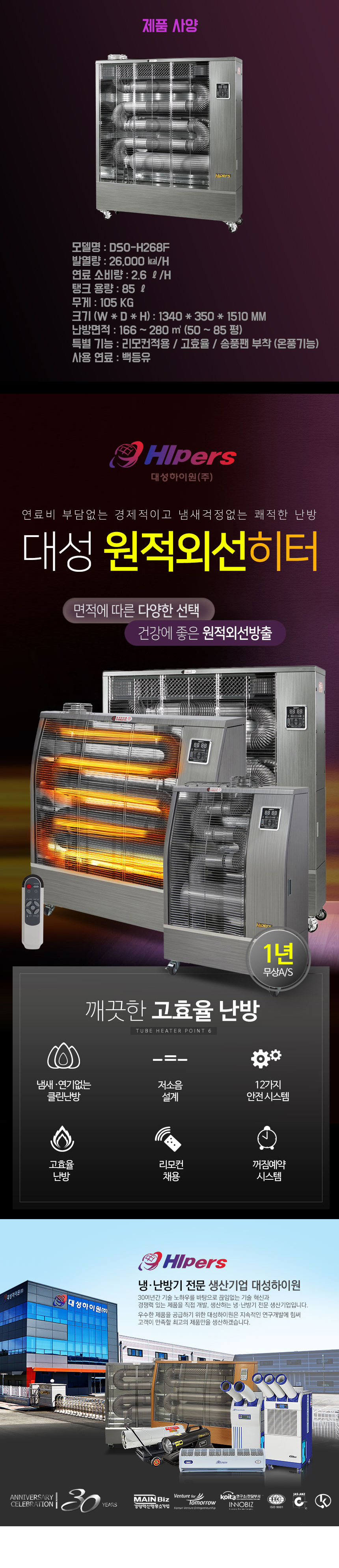 대성하이원 원적외석히터(백등유) DSO-H268F (50-85평) 난방기구, DSOH268F