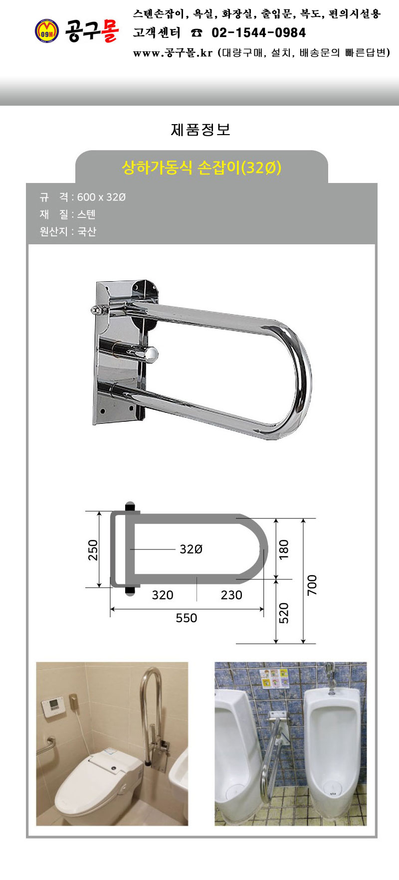 완성 상.하가동식 손잡이 600X32, 완성(40) 요양원, 장애인,편의시설