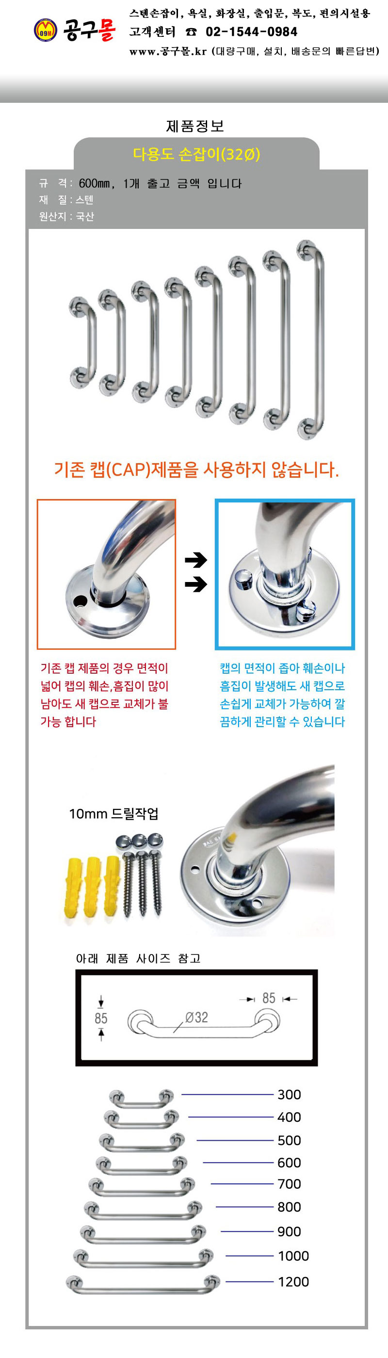 완성 다용도손잡이 32x600mm, 완성(40) 요양원, 장애인,편의시설