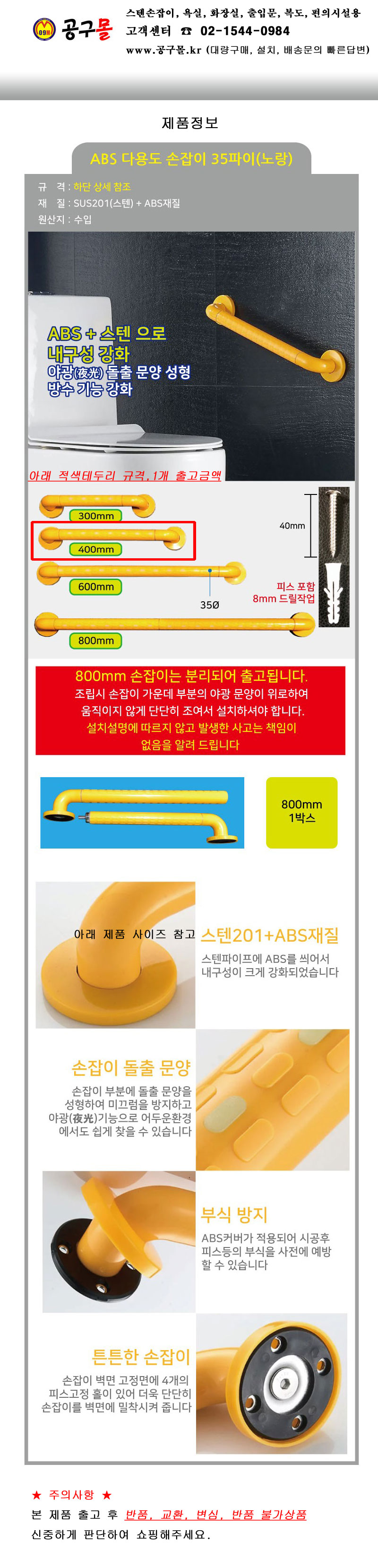완성 ABS 다용도 손잡이(노랑) 35x400mm, 완성(40) 요양원, 장애인,편의시설