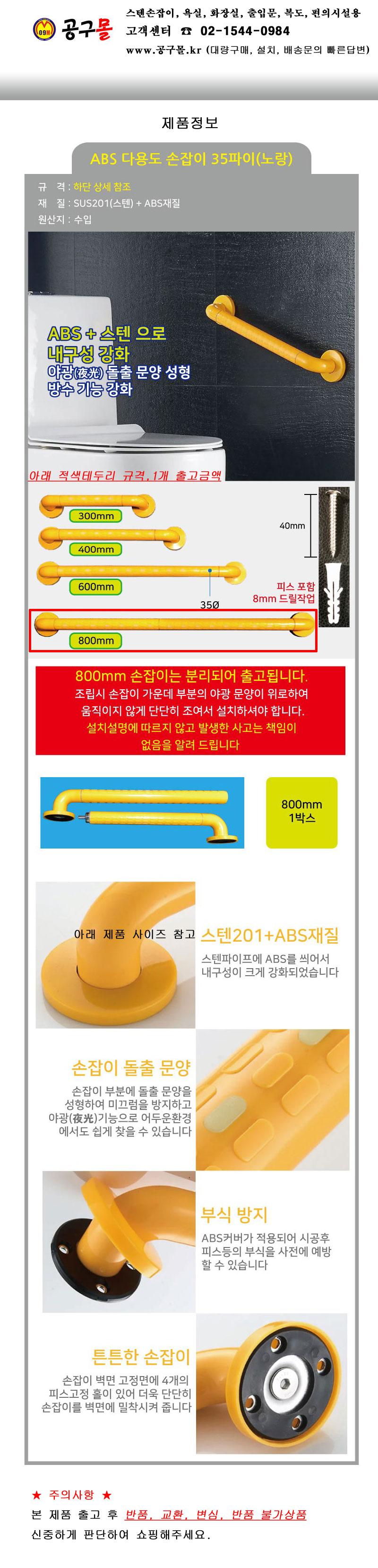 완성 ABS 다용도 손잡이(노랑) 35x800mm, 완성(40) 요양원, 장애인,편의시설