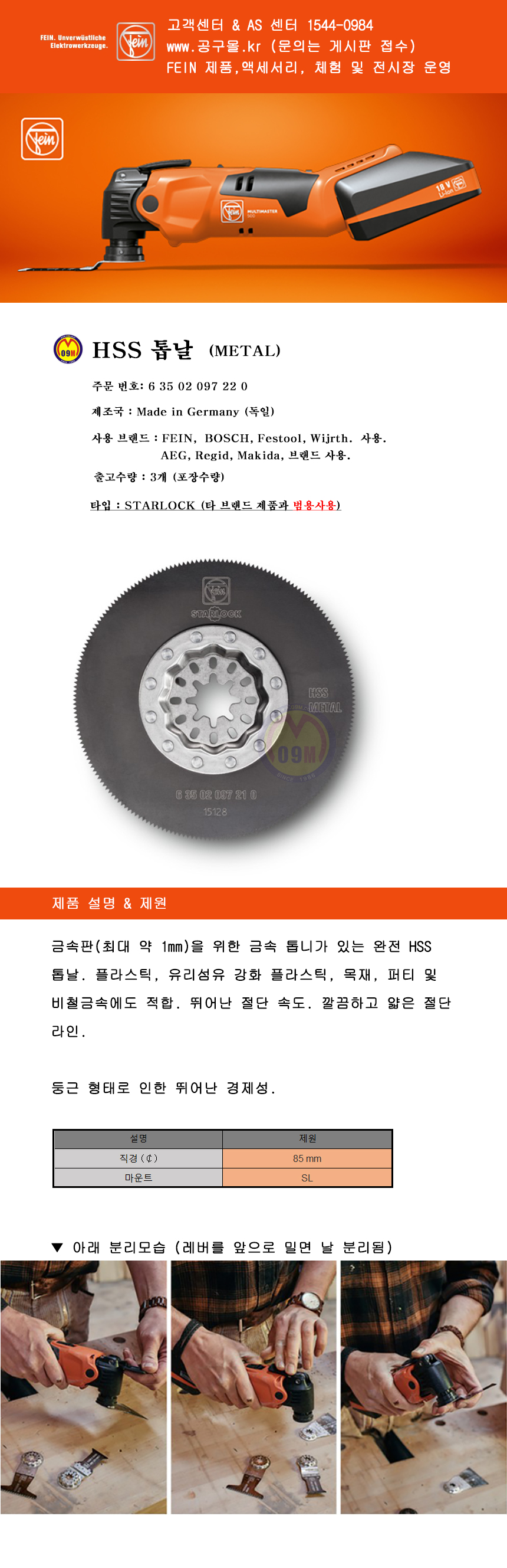 파인 HSS 톱날 (METAL) 097-85mm-2개출고, FEIN,파인,스타락, 멀티마스타, 63502097220