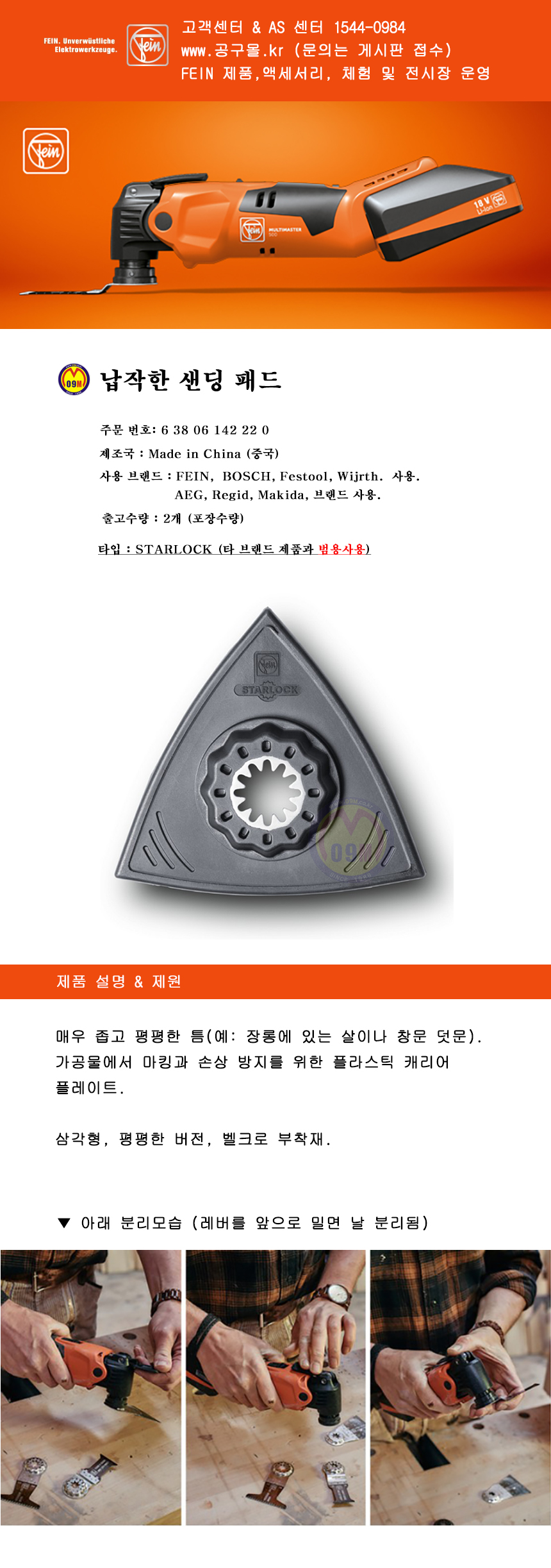 파인 납작한 샌딩패드 142-80mm-2개출고, FEIN,파인,스타락, 멀티마스타, 63806142220