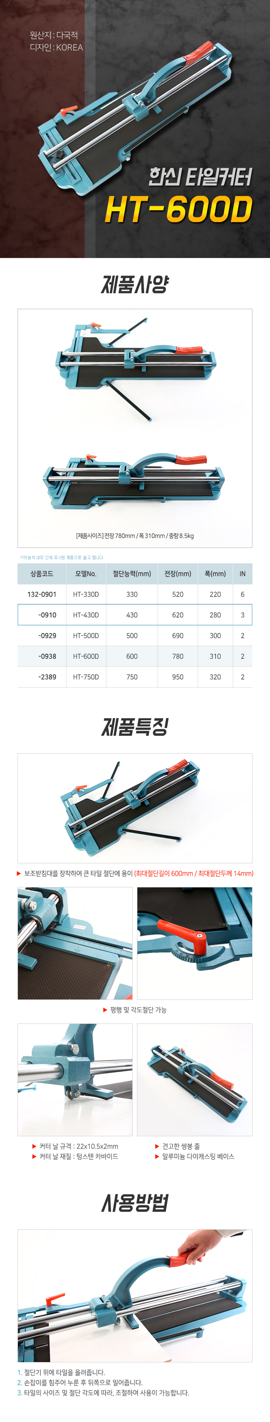 한신 타일커터(AL) HT-600AL 쌍날 (경량용) , 타일캇타,타일컷터