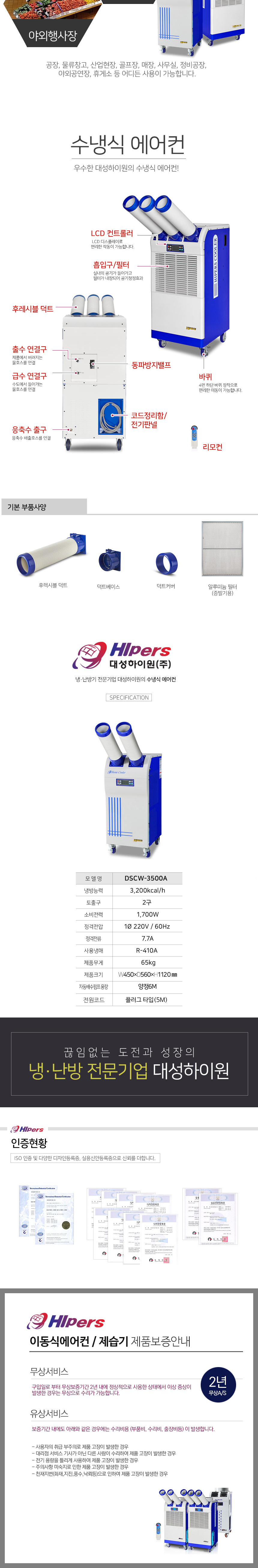대성하이원 수냉식에어컨 DSCW-3500A (3500Kcal/h) 에어컨 야외에어컨