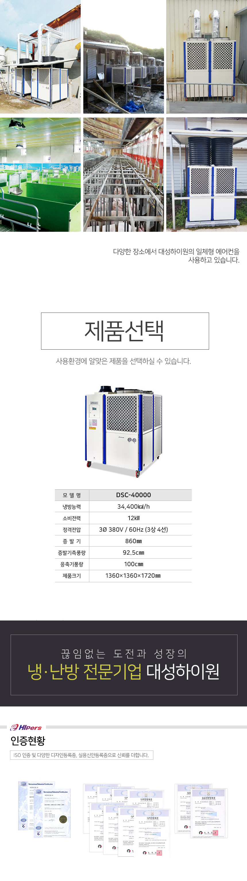 대성하이원 수냉식에어컨 DSC-40000 (34400Kcal/h) 에어컨 야외에어컨