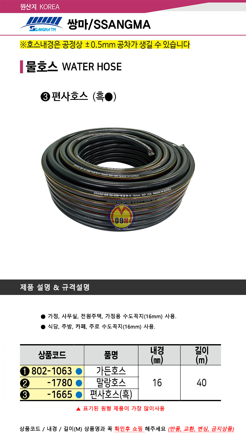 가든호스 16MMx40M 쌍마,물호스, 수도호스, 공구몰, 802-1063