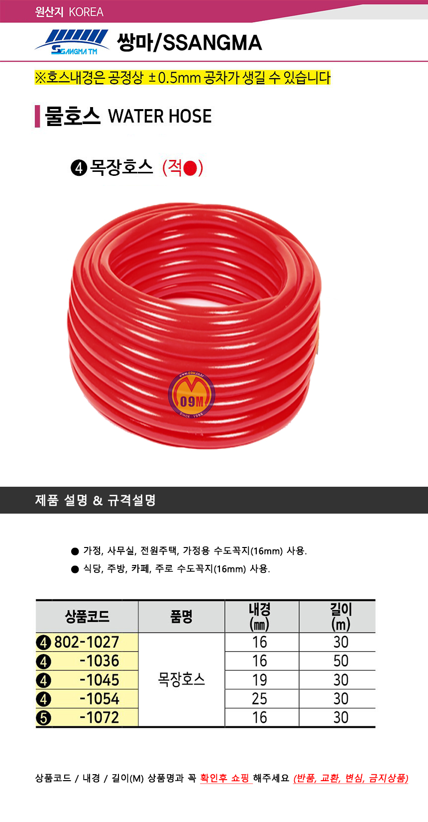목장호스 16MMx50M 쌍마,물호스, 수도호스, 공구몰, 802-1036