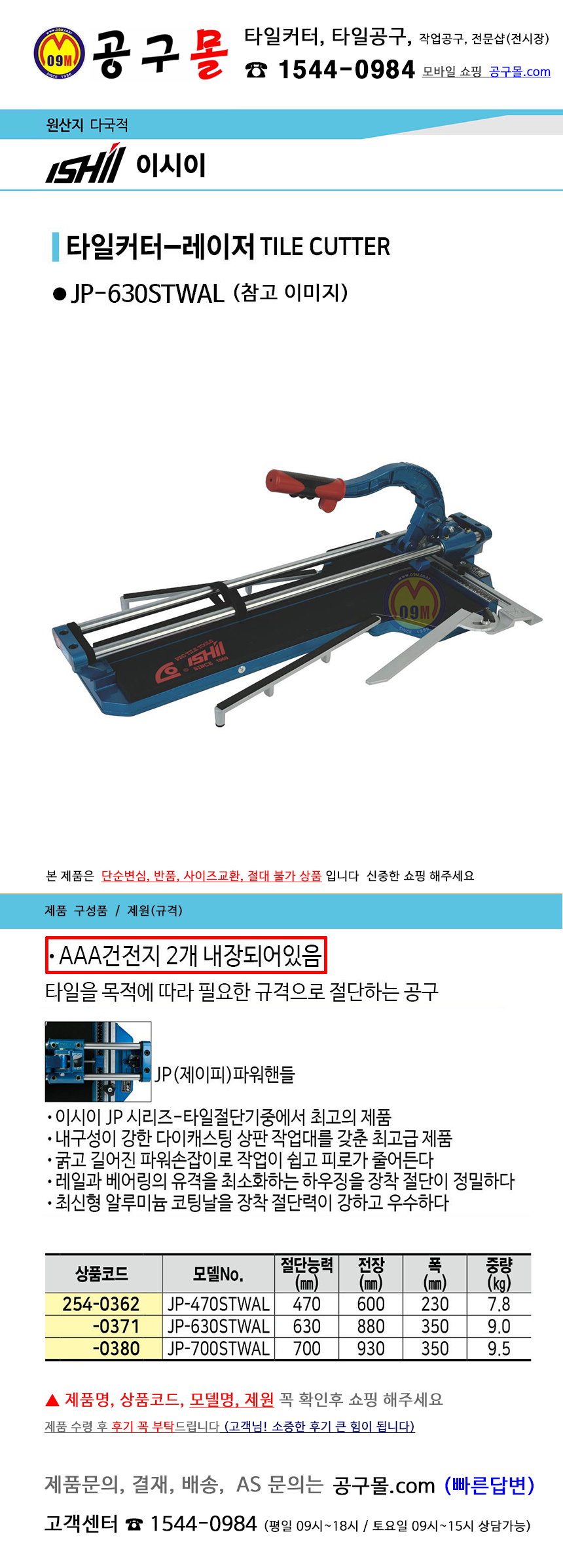 타일커터(레이저) JP-630STWAL ISHII-이시이/공구몰,타일공구, 타일절단기, 254-0371