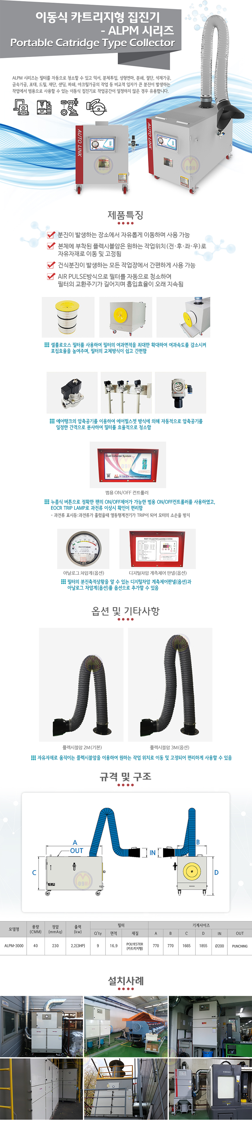 이동식카트리지집진기 ALPM-3000 (3HP) 오토링크, 이동식집진기 카트리지타입