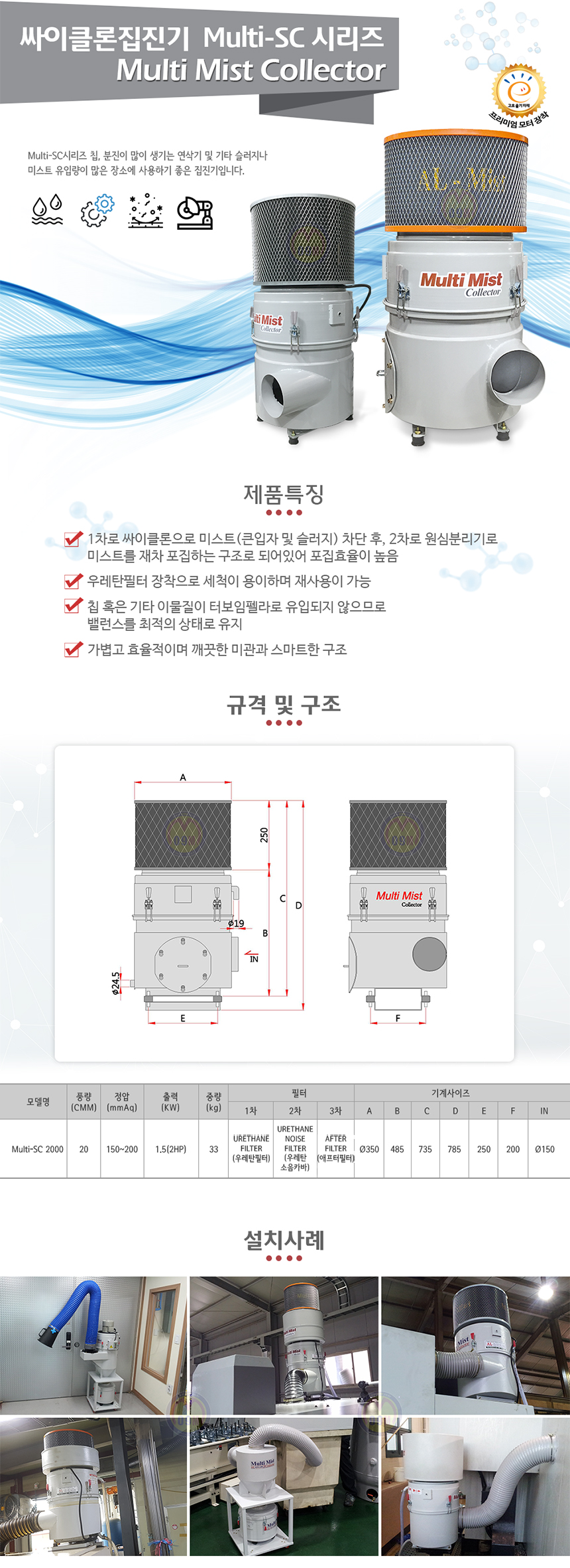 멀티미스트집진기 Multi1500(1.5HP-440V) 오토링크/공구몰/오일미스트 집진기