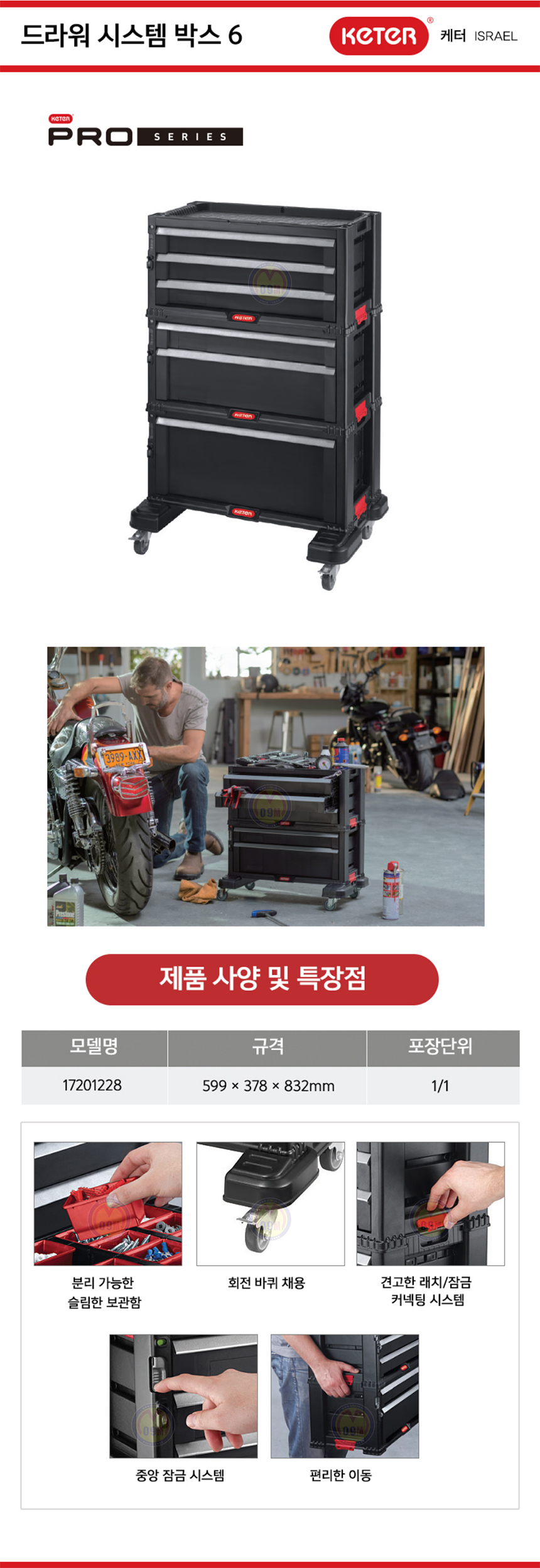 드라워 시스템 6단 서랍식보관함 17201228 KETER 케터 이동공구함 서랍식공구함