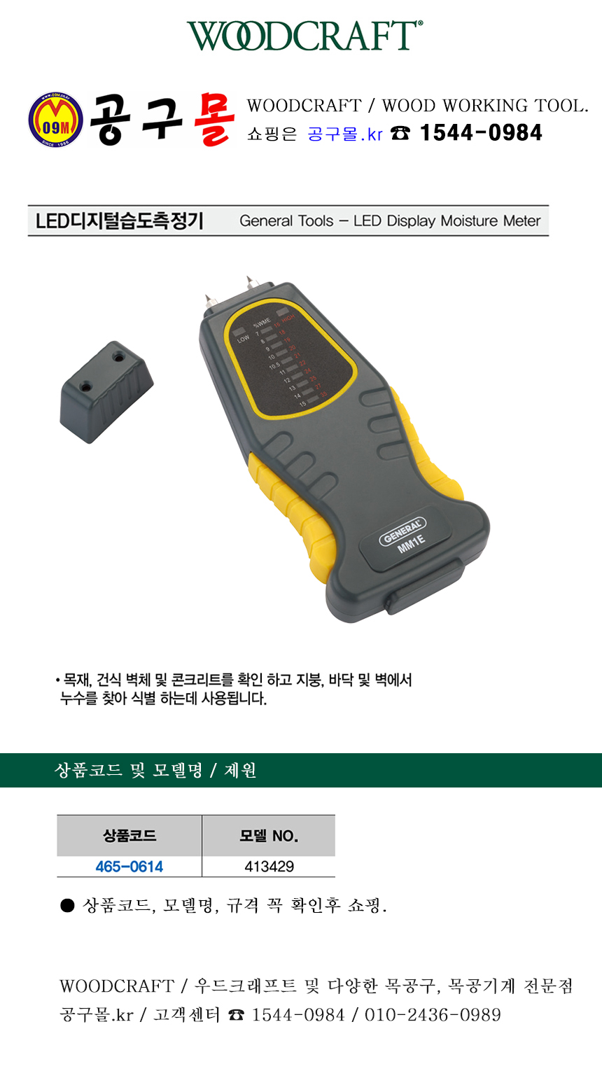 디지털 습도측정기 413429, 465-0614, 수분측정기, 목재수분측정기, 콘크리트수분측정기, 누수측정기, WOODCRAFT, 우드크래프트