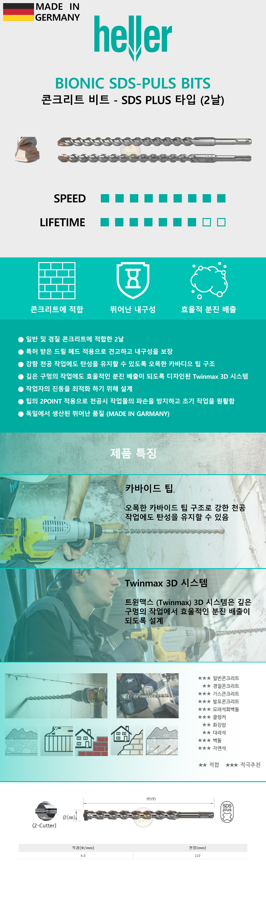 헬러 SDS-PLUS 콘크리트 비트 (6.0-110mm) 독일제 콘크리트날
