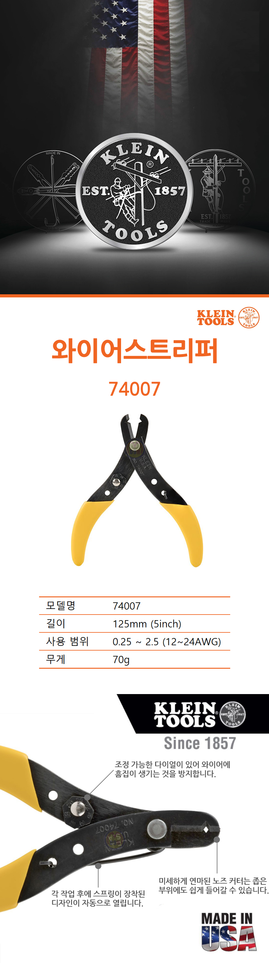 클라인툴스 와이어 스트리퍼 74007, KLEIN, 작업공구,수공구