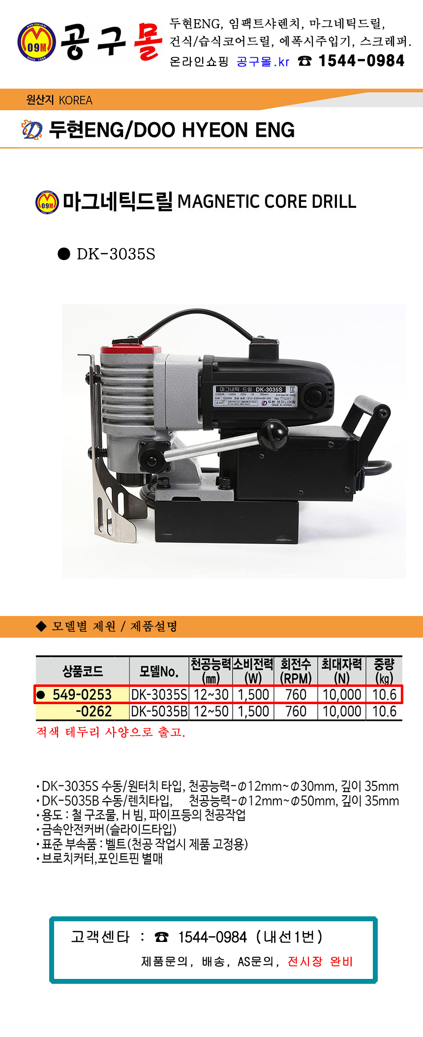 두현ENG 마그네틱드릴 DK-3035S 공구몰, 마그드릴, 철구조물드릴, 자석드릴, 549-0253