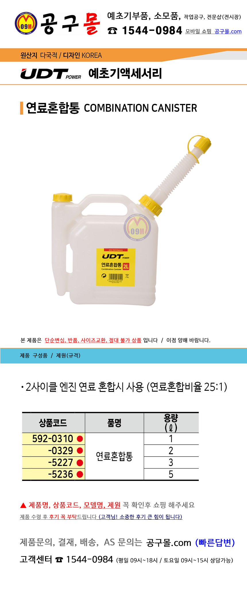 UDT 연료혼합통 1L (2사이클전용) UDT예초기,공구몰,기름통, 오일통, 592-0310