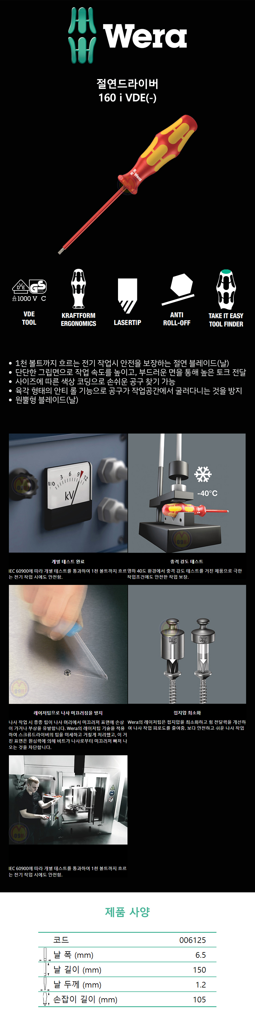 베라 절연드라이버 160 i VDE WERA, (1.2-6.5-150-006125) -드라이버 일자드라이버