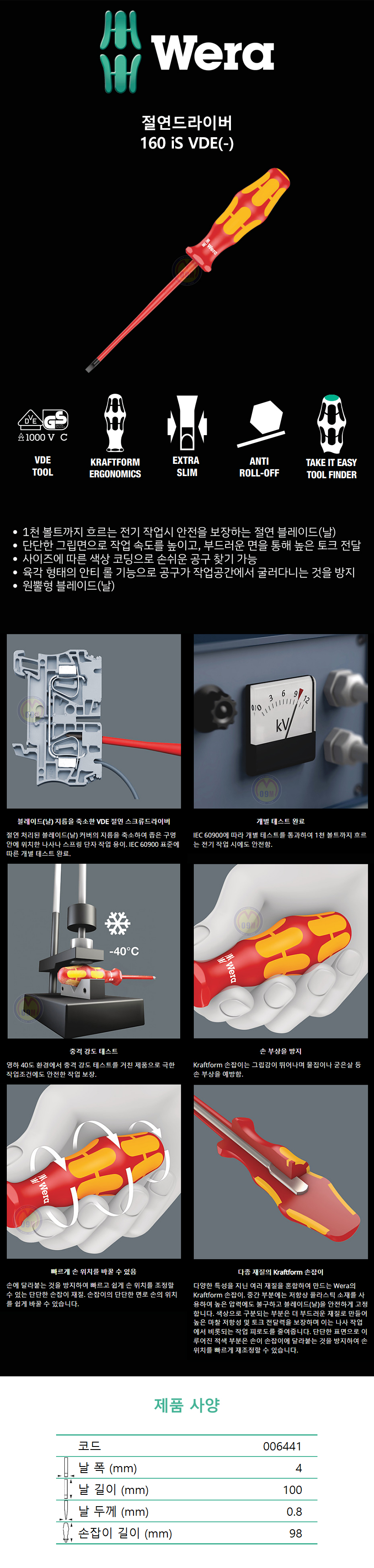 베라 절연드라이버 슬림형 160 iS VDE WERA, (0.8-4.0-100-006441) -드라이버 일자드라이버