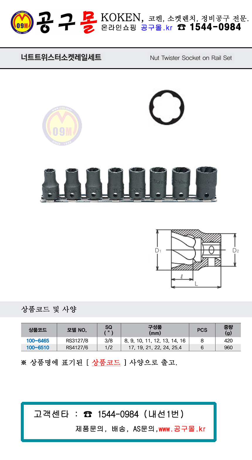 코켄 너트 트위스터레일소켓세트 1/2 RS4127-6 KOKEN, 복스알,100-6510