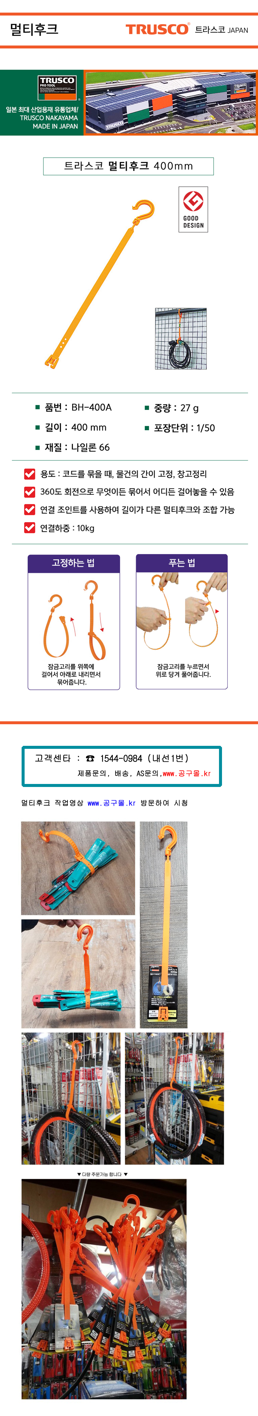 트라스코 멀티후크 BH-400A (400mm) TRUSCO, 전선후크, 로프후크,공구몰,BH400A