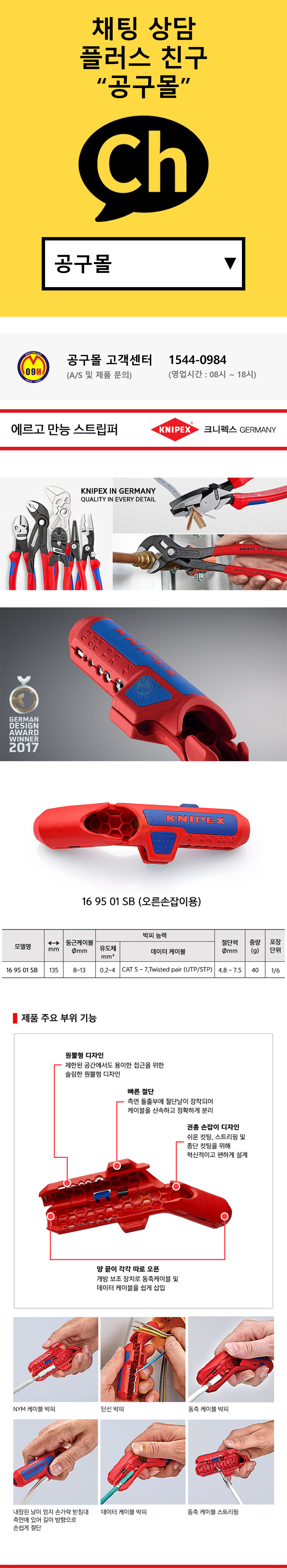 크니펙스 에르고 스트리퍼 16-95-01SB (오른손잡이용) 피복탈피기 전선탈피기