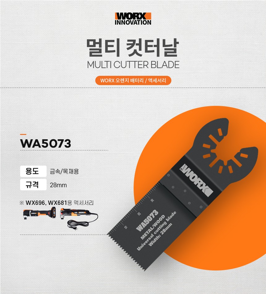 WORX 멀티컷터날 WA5073, 28mm(금속/목재) WX696, WX681용, 웍스오랜지, 웍스코리아, WORXKOREA, 웍스프로, WORX PRO