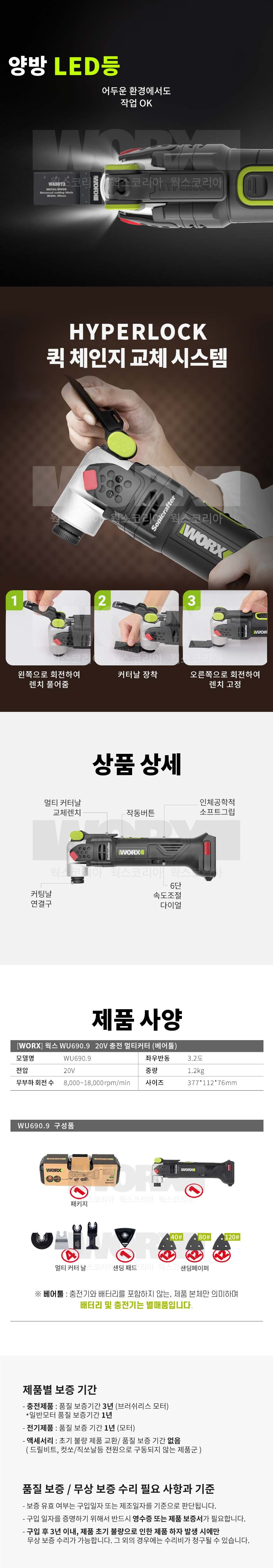WORX 충전멀티커터(베어툴) WU690.9 (20V) 속도조절, 배터리, 충전기별매, 원형톱, 전기톱, 웍스코리아, WORXKOREA, 웍스프로, WORX PRO