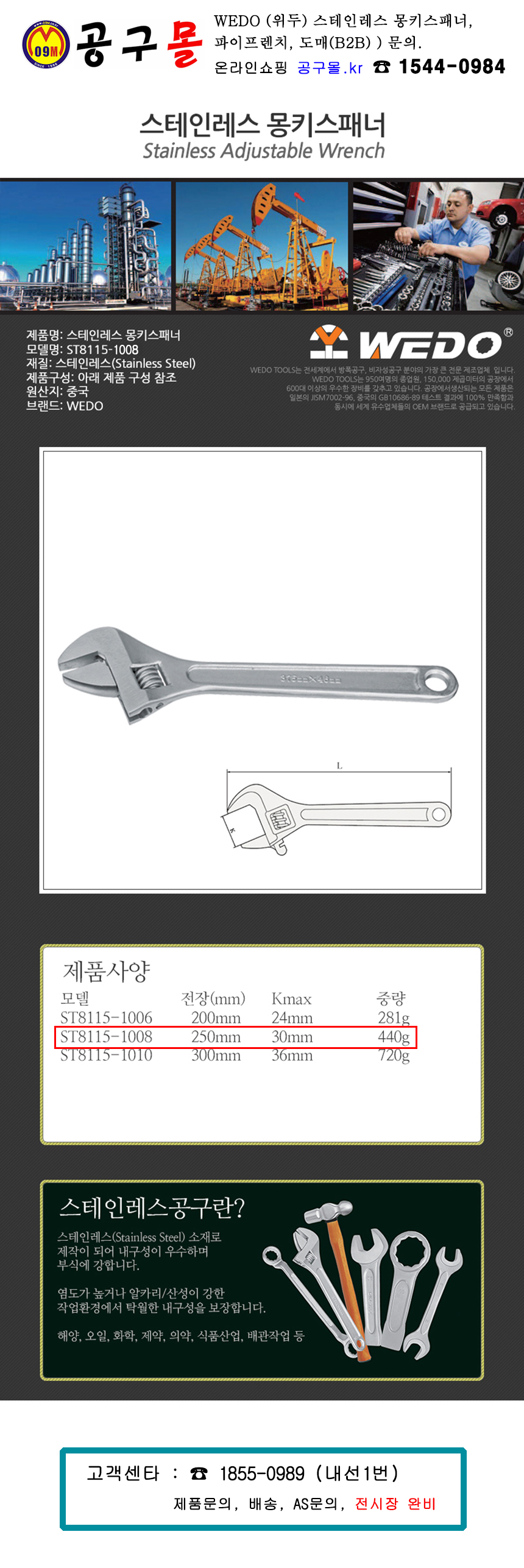위두 스텐 몽키스패너 250mm (ST8115-1008) WEDO, 공구몰, 800564255133