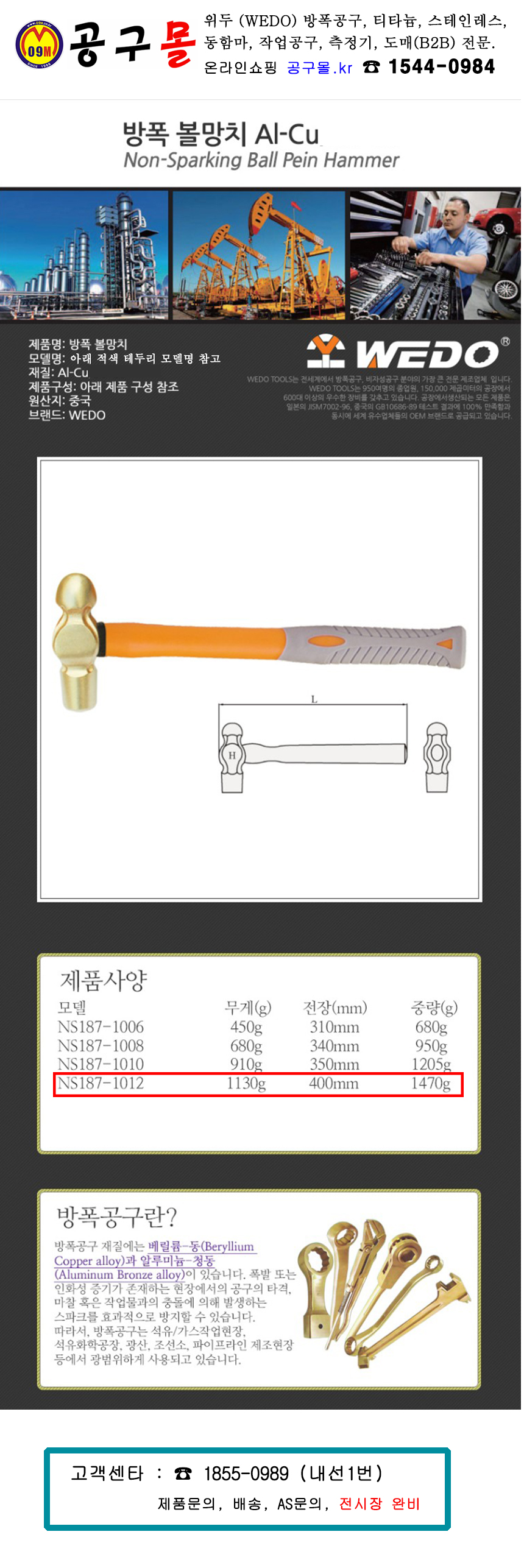 위두 방폭오함마 BE-CU 1.4Kg / 3LBS (NS191-1006) WEDO, 공구몰, 방폭수공구, 작업공구, 800564253801
