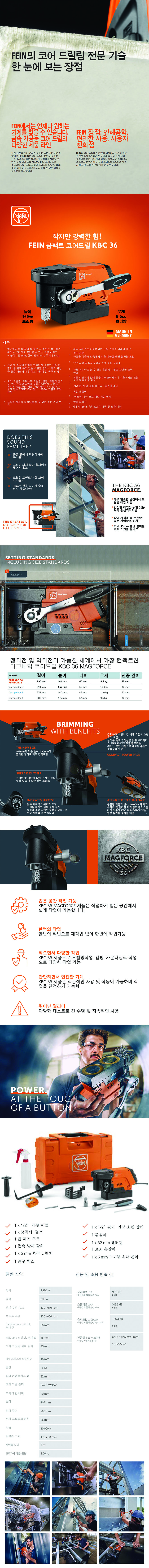 파인 마그네틱드릴 KBC36 (36mm 천공) H빔용 FEIN, 좁은공간용 소형마그네틱드릴 마그네틱코아드릴