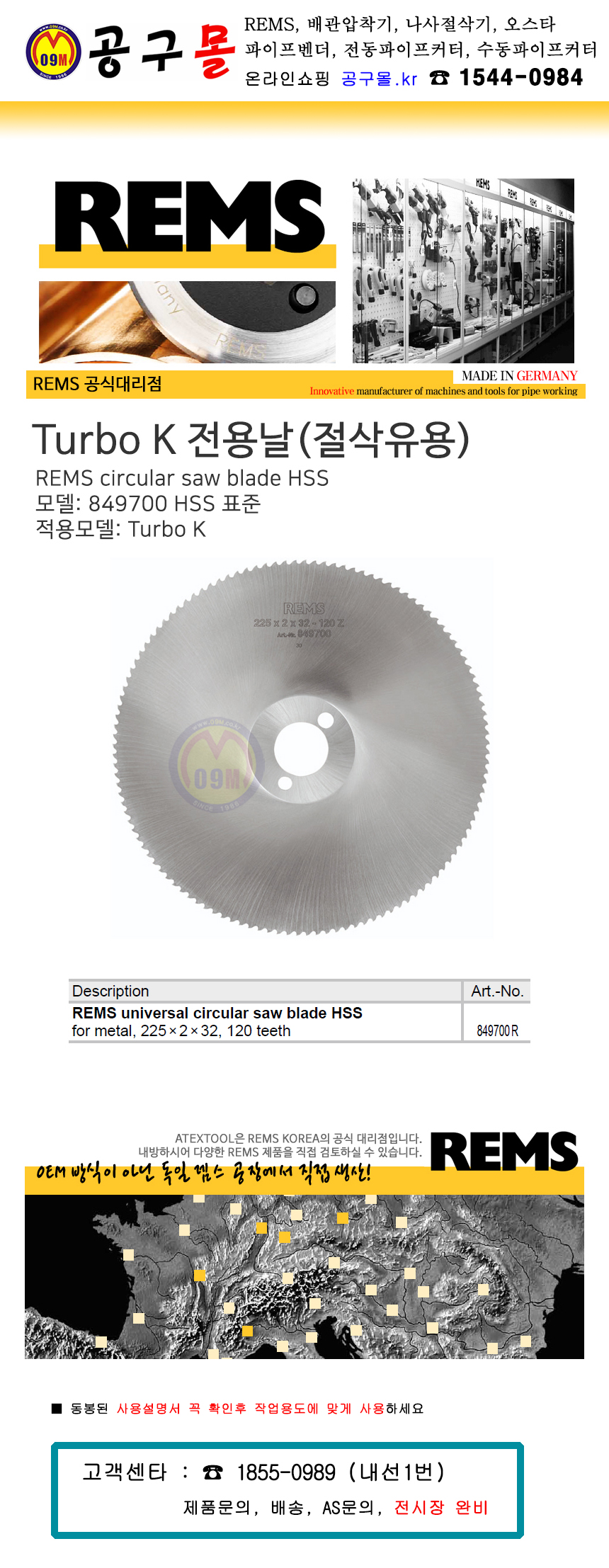 렘스 HSS-K (터보K전용) 849700 R, 78mm (849007용) 절삭유사용 REMS , 공구몰, 독일제조