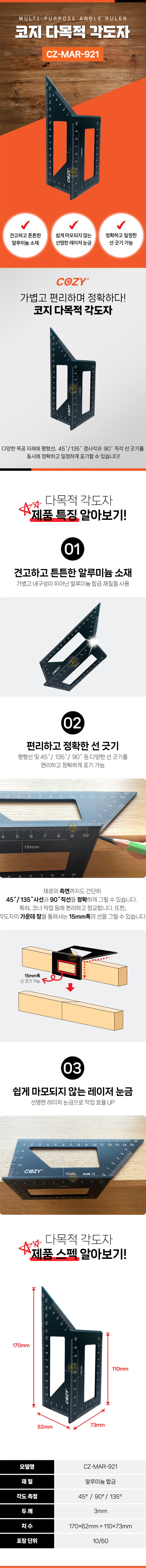 코지 다목적각도자 CZ-MAR-921 다용도, 다기능, 제도, 직각자, 공구몰.