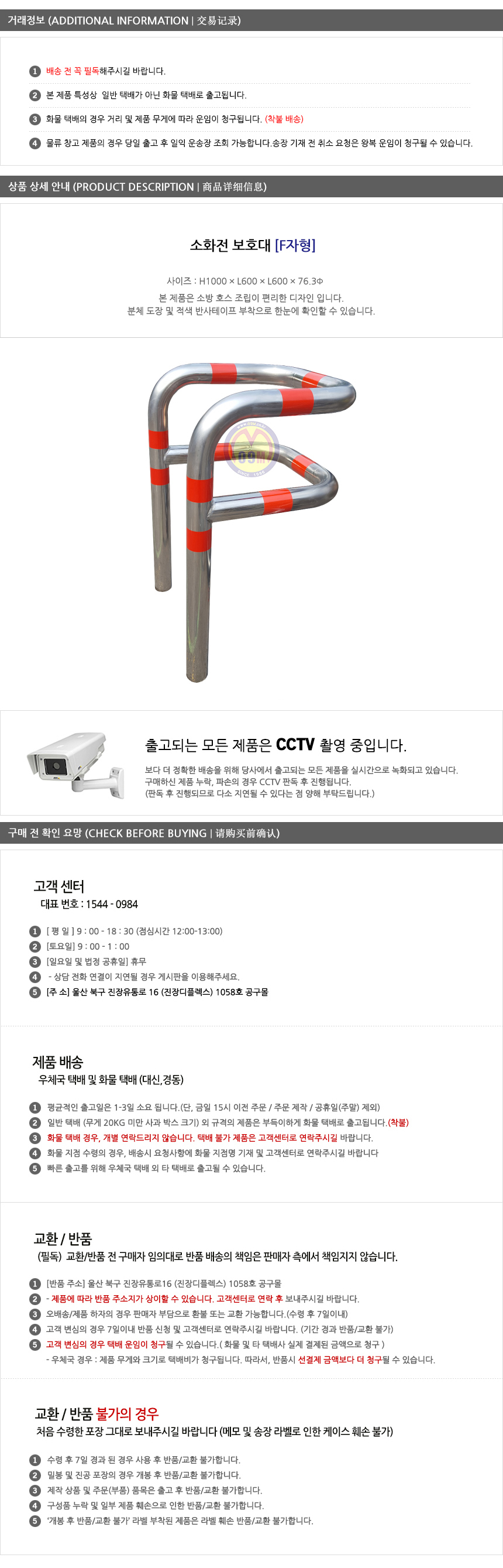 완성 스텐 소화전보호대 [F자형] 안전용품 공구몰닷컴