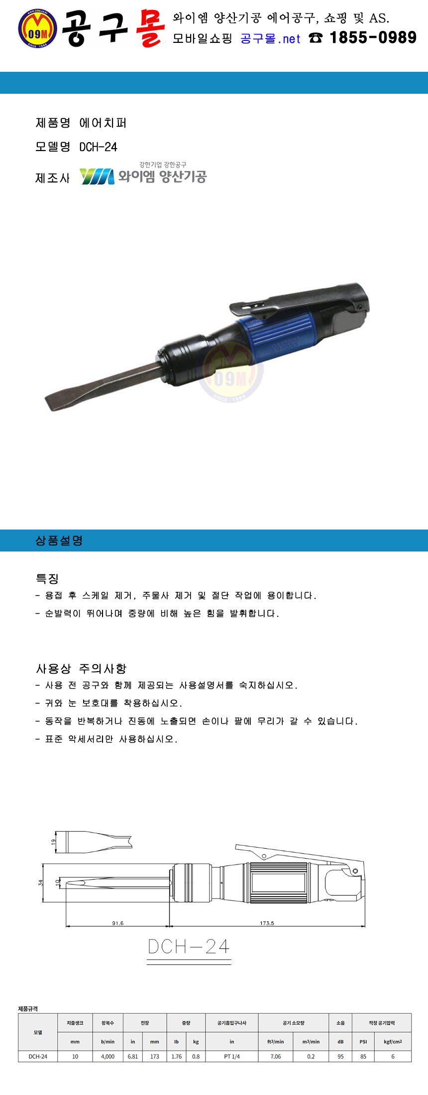 양산기공 에어치퍼 DCH-24 와이엠양산기공, 에어공구, 공구몰