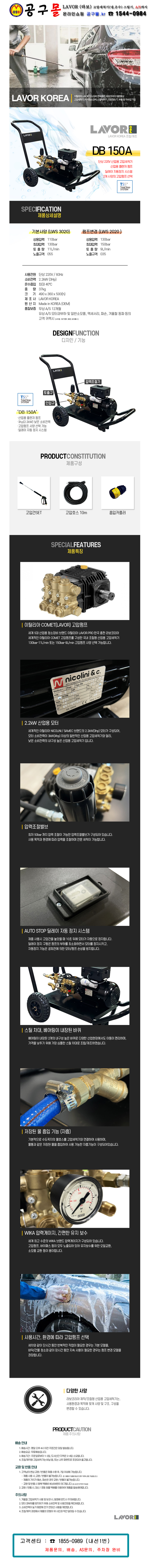 라보 산업용 고압세척기 DB150(수동) 단상3HP 150바 라보 LAVOR 220V