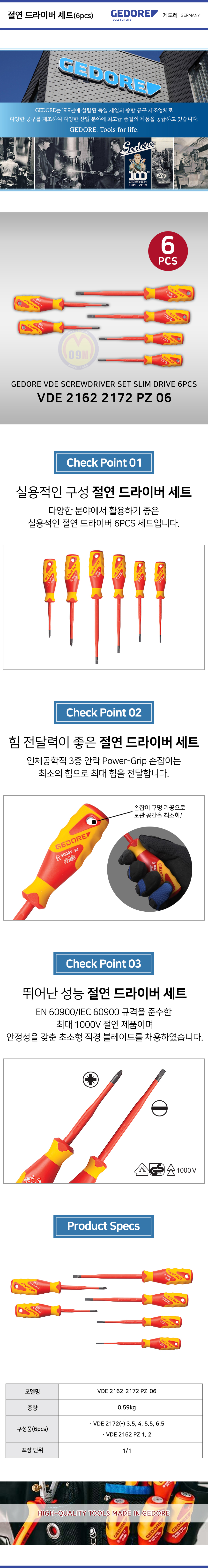게도레 절연드라이버세트 VDE2162-2172 PZ-06 (6PCS) GEDORE, 독일공구, 공구몰,101001209015