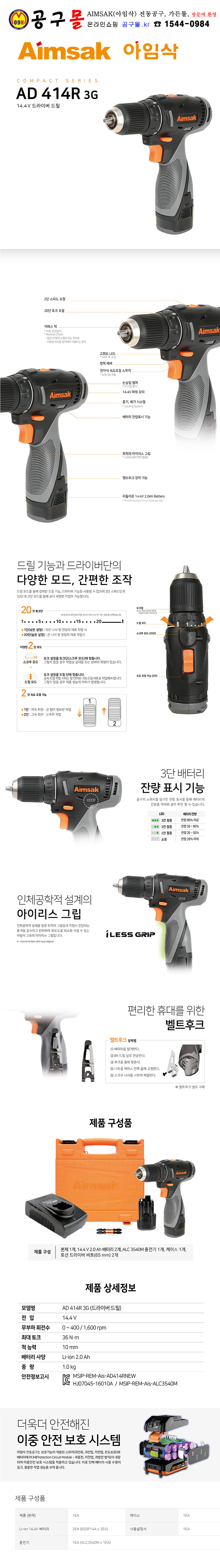 아임삭 충전드릴드라이버 AD-414R 3G (14.4V 2.0Ah 2B) AIMSAK, 공구몰, C 508-5990