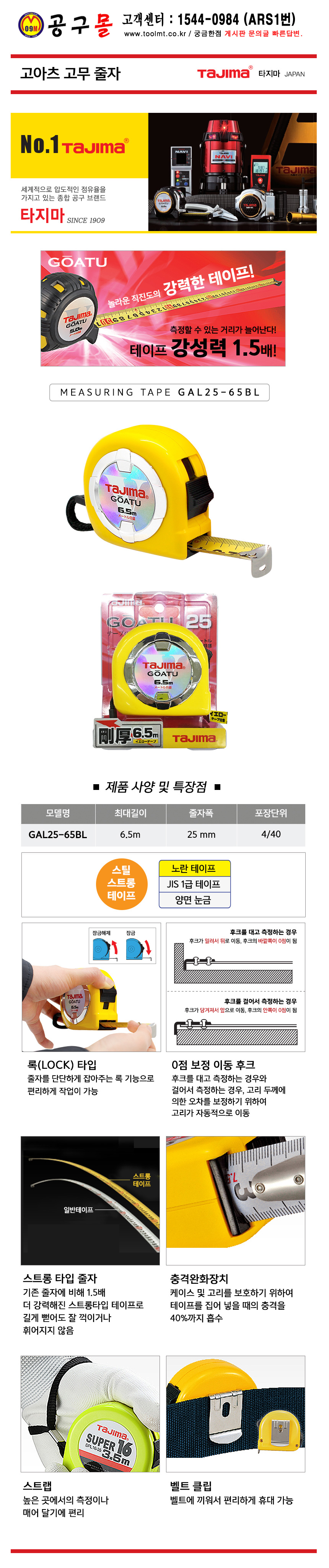 타지마 줄자 GAL25-65-6.5M (고아츠,자동) TAJIMA, 자동, 공구몰,141402454580