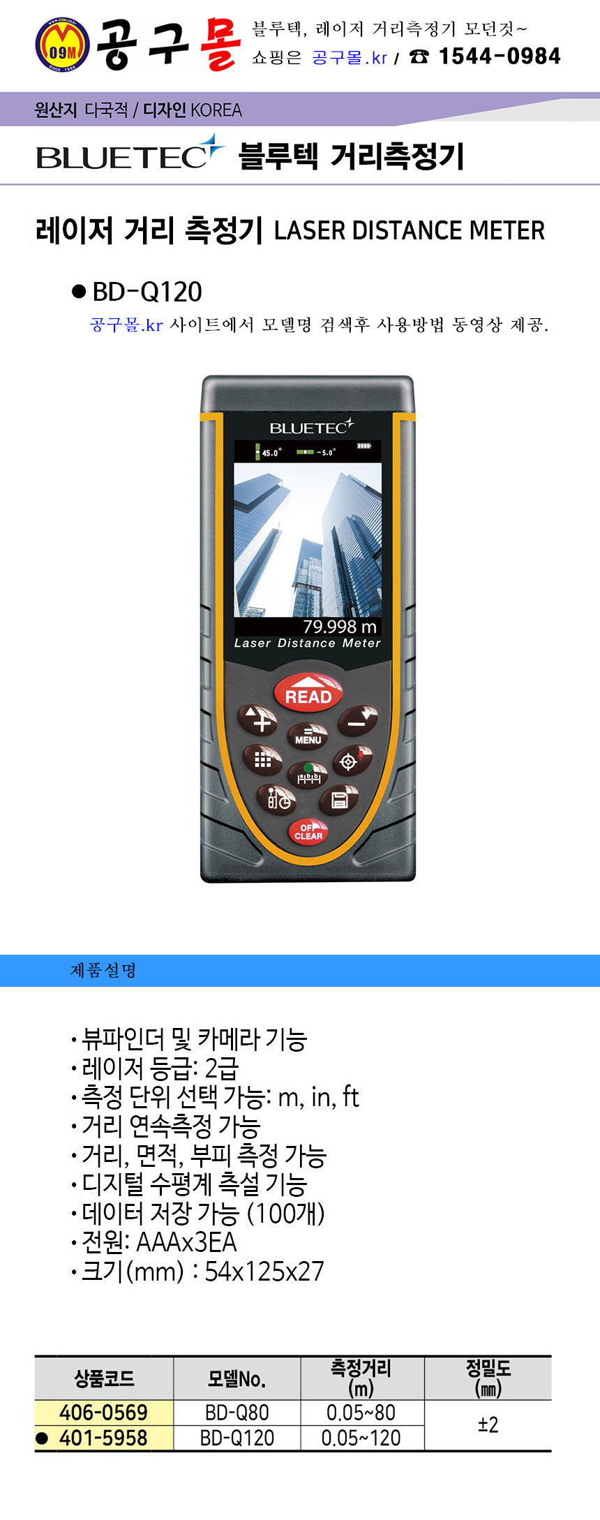 블루텍 레이저거리측정기 BD-Q80 (80M) BLUETEC, 거리측정기, 레이저메타, 406-0569