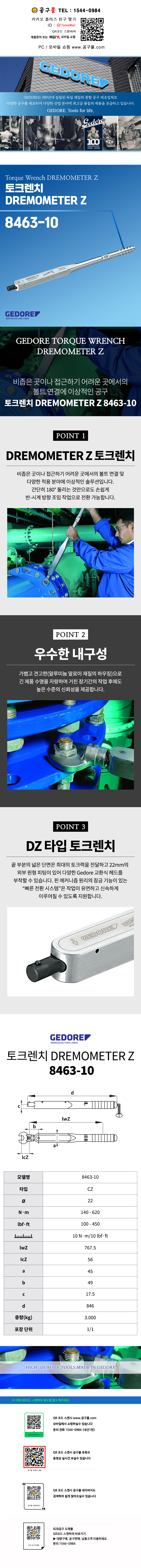 게도레 토크렌치 8463-10 (DZ, 140-620Nm) GEDORE 101002444683