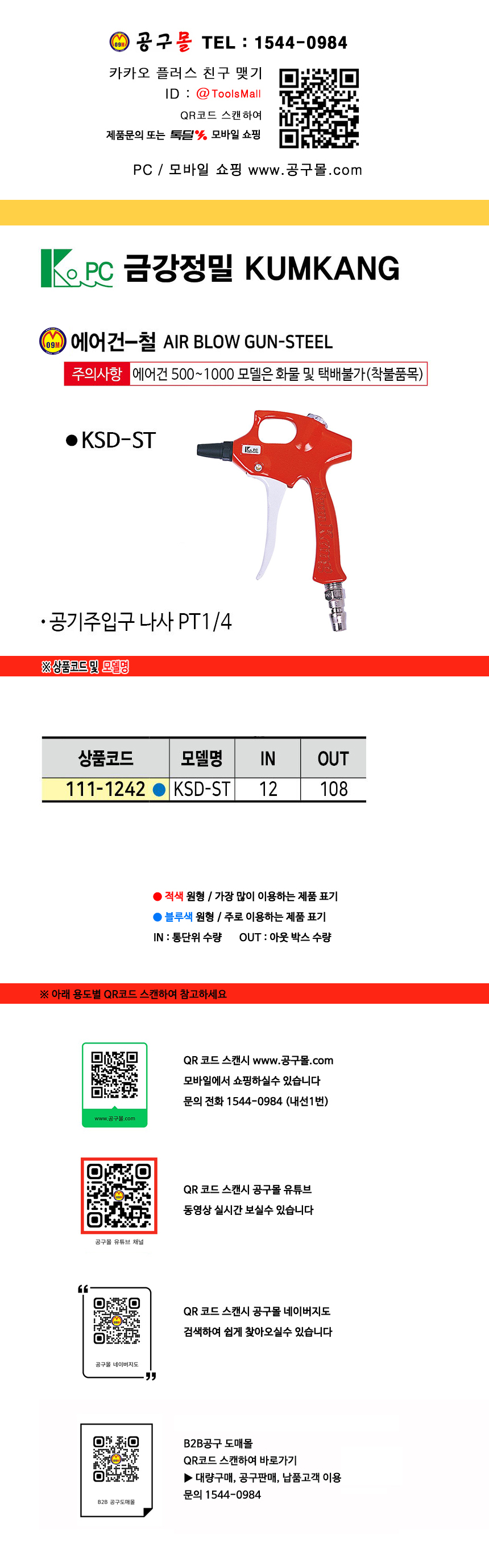 금강정밀 에어건 KD-ST 에어공구, 공구몰 111-1172