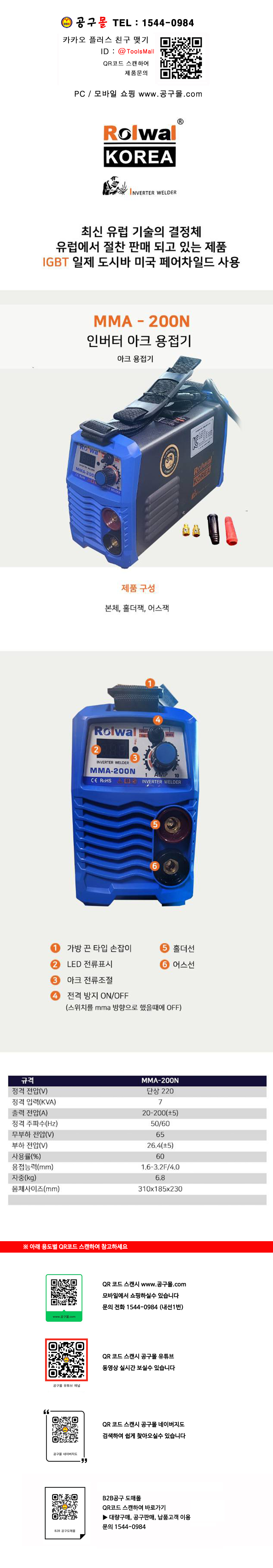 로웰코리아 인버터 아크용접기 MMA-200N 웰딩 공구몰, 725-9739