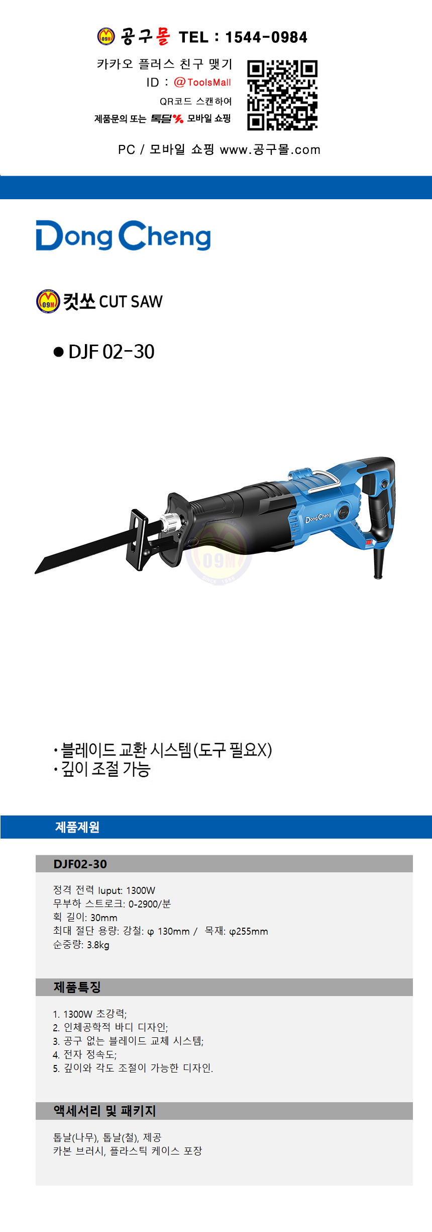 동청 컷쏘 DJF02-30 1100W 철130,목재255mm 속도조절, DongCheng 공구몰닷컴 585-0473